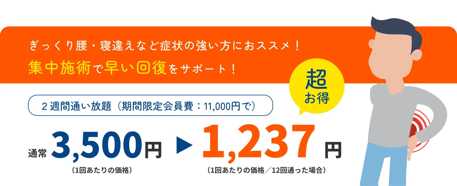 部分施術首・肩・腰どこかおひとつ 4,800円3,980 3,500